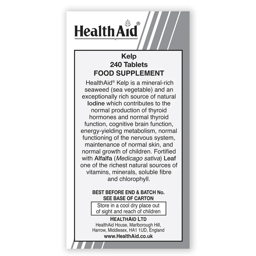 Health Aid Kelp 240 таблеток — это высококачественная добавка, содержащая экстракт ламинарии, богатый йодом и другими полезными веществами. Этот продукт поможет поддерживать нормальную функцию щитовидной железы и общее состояние организма.