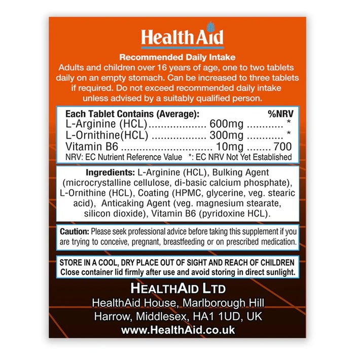 Health Aid L-аргинин с L-орнитином — это высококачественная добавка, содержащая 300 мг активных ингредиентов в каждой таблетке. В упаковке находится 60 таблеток, которые помогут поддержать здоровье и физическую активность.