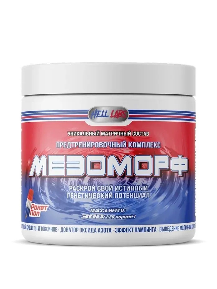 Предтренировочный комплекс Мезоморф Рокет поп от бренда HELL LABS — это мощный стимулятор, который поможет вам достичь максимальных результатов в тренировках. В каждой упаковке содержится 300 г высококачественного порошка с уникальным вкусом, который обеспечит вас энергией и силой для интенсивных занятий.