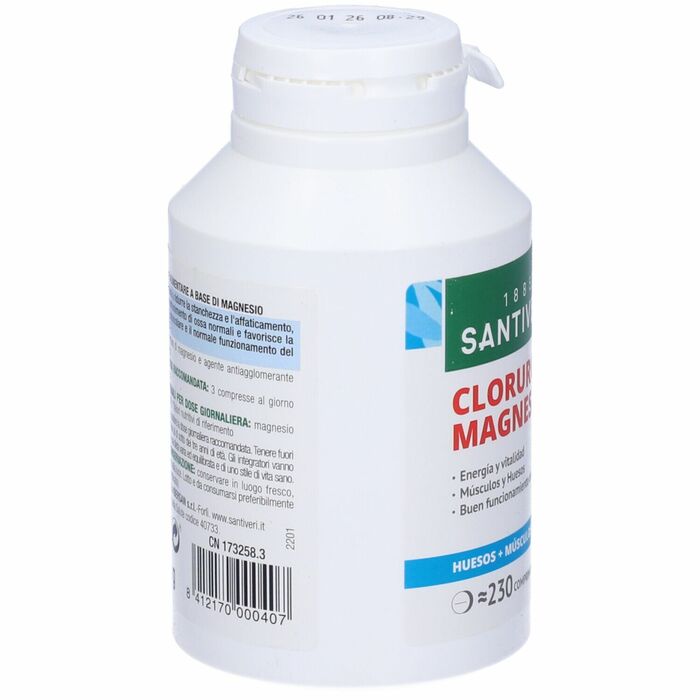 Хлорид магния Santiveri в форме таблеток — это эффективный источник магния, необходимого для нормального функционирования организма. В каждой упаковке содержится 230 таблеток, что обеспечивает длительный курс приема.