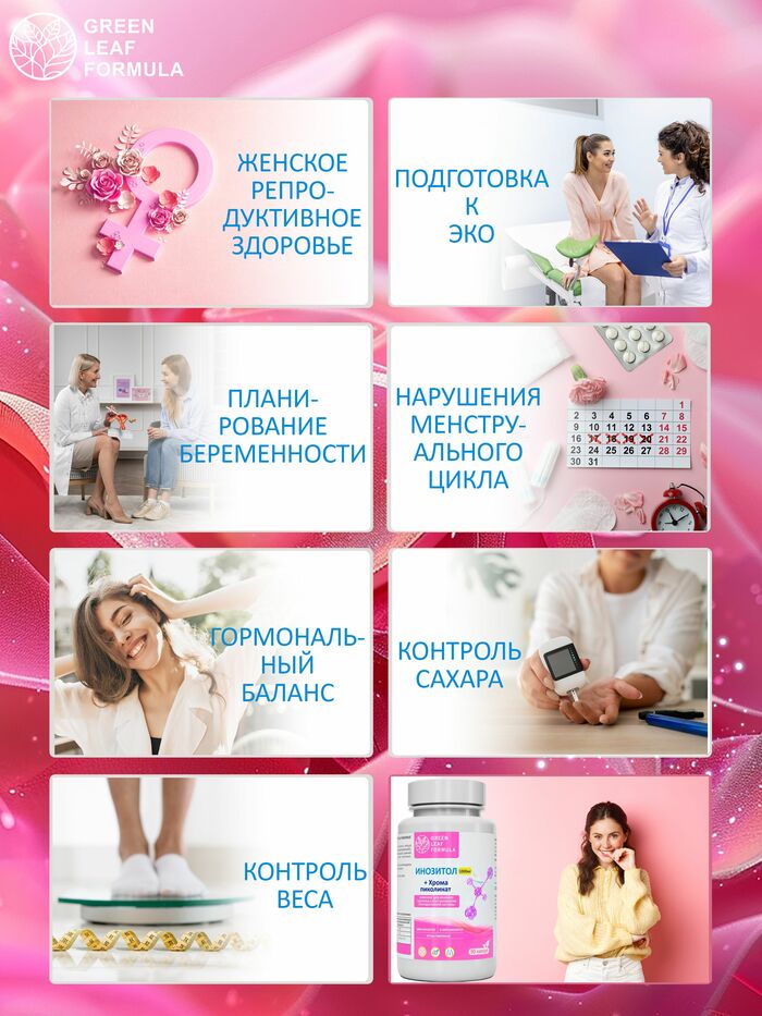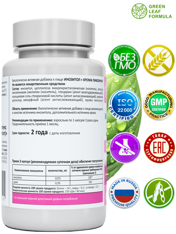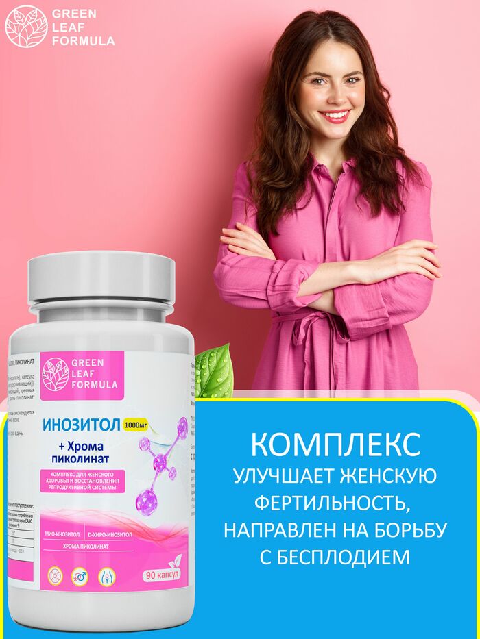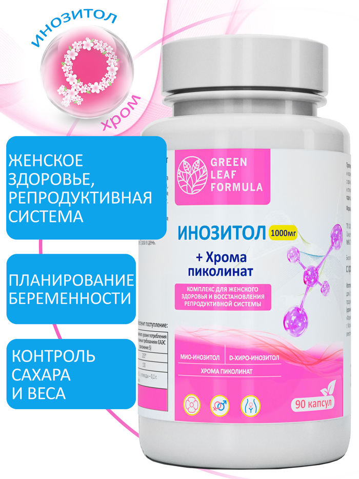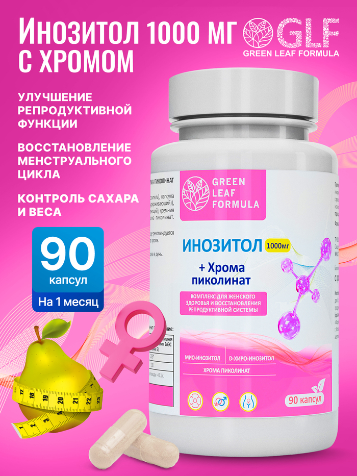 Инозитол (1000 мг) с хромом от бренда GREEN LEAF FORMULA — это высококачественная добавка, которая поддерживает здоровье и нормальное функционирование организма. В каждой упаковке содержится 90 капсул, что обеспечивает длительный курс приема.