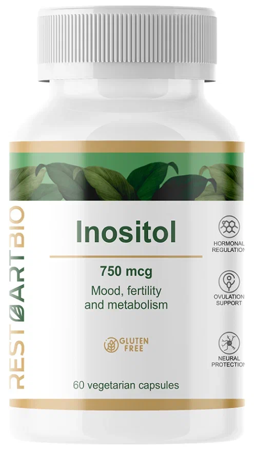 Инозитол (750 мг) от бренда RestartBio — это высококачественная добавка, предназначенная для поддержания нормального функционирования организма. В каждой упаковке содержится 60 капсул, что обеспечивает длительный курс приема.