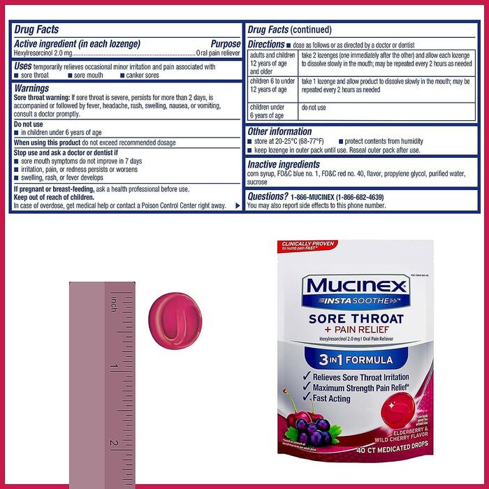 Эффективное средство от боли в горле благодаря успокаивающему вкусу бузины и дикой вишни. Наша формула максимальной силы действия* 3 в 1 быстро приглушает боль, чтобы вы могли продолжить свой день.