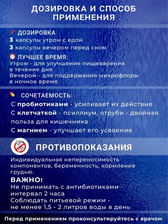 Капсулы Инулина легко проглатываются и подходят для ежедневного использования. Рекомендуется для людей, стремящихся улучшить здоровье пищеварительной системы и поддержать баланс микрофлоры.