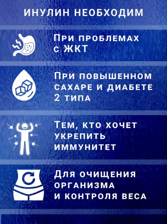• Поддержка пищеварения: Инулин способствует улучшению работы кишечника и нормализации пищеварительных процессов.