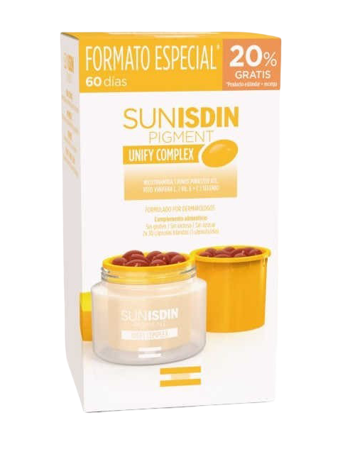 ISDIN Sunisdin Pigment Unify Complex — это эффективный комплекс для поддержания здоровья кожи и борьбы с пигментацией. В каждой упаковке содержится 60 капсул, которые помогут вам достичь ровного и сияющего тона кожи.