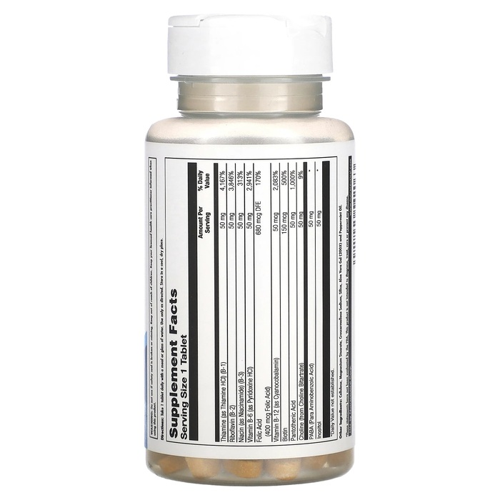 Витамины группы B помогают поддерживать широкий спектр биологических функций, от выработки энергии до иммунной функции. Существует восемь различных витаминов группы B: B1 (тиамин); B2 (рибофлавин); B3 (ниацин); B5 (пантотеновая кислота); B6 (пиридоксин); B7 (биотин); B9 (фолат); и B12 (цианокобаламин). Каждый витамин играет разную роль в таких функциях, как выработка гормонов, метаболизм, образование клеток крови и многое другое. Комплекс B-50 объединяет эти незаменимые витамины группы B в удобную таблетку. Всего одна таблетка комплекса B-50 может обладать широким спектром преимуществ, а каждая таблетка имеет покрытие Aroma Smooth ™, которое придает свежий мятный вкус.