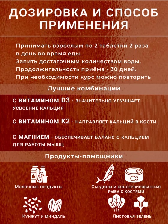 • Поддержка костной массы: Регулярный прием кальция способствует укреплению костей и снижению риска остеопороза.