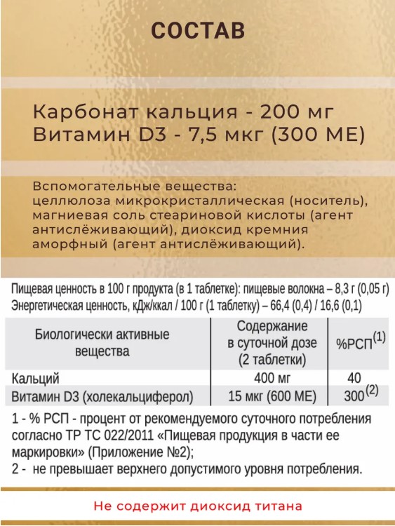• Укрепление костей: Кальций и витамин Д3 способствуют укреплению костной ткани и улучшению усвоения кальция.