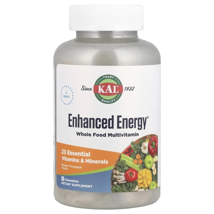 Kal® Enhanced Energy® обеспечивает сбалансированный подход к ежедневному питанию всего организма благодаря синергетической смеси витаминов, минералов и натуральных пищевых кофакторов. Этот удивительный комплекс из цельных продуктов содержит органические фрукты и овощи, а также бодрящие зеленые продукты, антиоксидантные флавоноиды, пищеварительные ферменты и натуральные каротиноиды для поддержки нескольких систем клеток - все в одной таблетке!