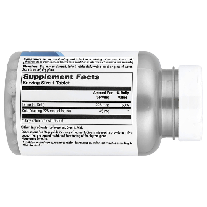 Описание. Морские водоросли содержат 225 мкг йода. йодин предназначен для обеспечения питательной поддержки нормального здоровья и функционирования щитовидной железы.