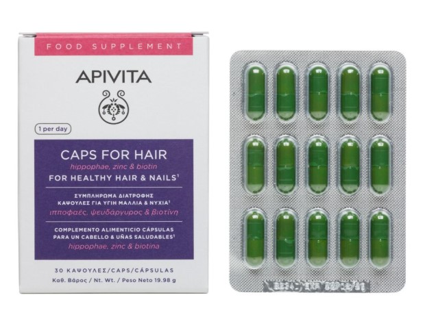 Капсулы Apivita Holistic Hair Care для здоровья волос и ногтей с облепихой — это идеальное решение для поддержания красоты и здоровья ваших волос и ногтей. В каждой упаковке содержится 30 капсул, которые обеспечивают организм необходимыми питательными веществами.