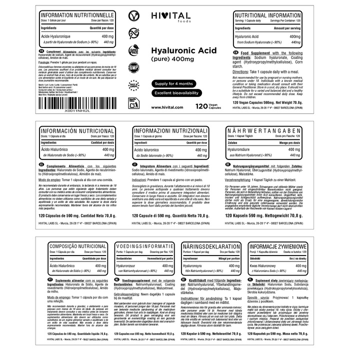Капсулы Гиалуроновая кислота Hivital Foods — это высококачественный продукт, который поможет поддержать здоровье кожи и суставов. В каждой упаковке содержится 120 капсул по 400 мг, что обеспечивает длительный курс применения.