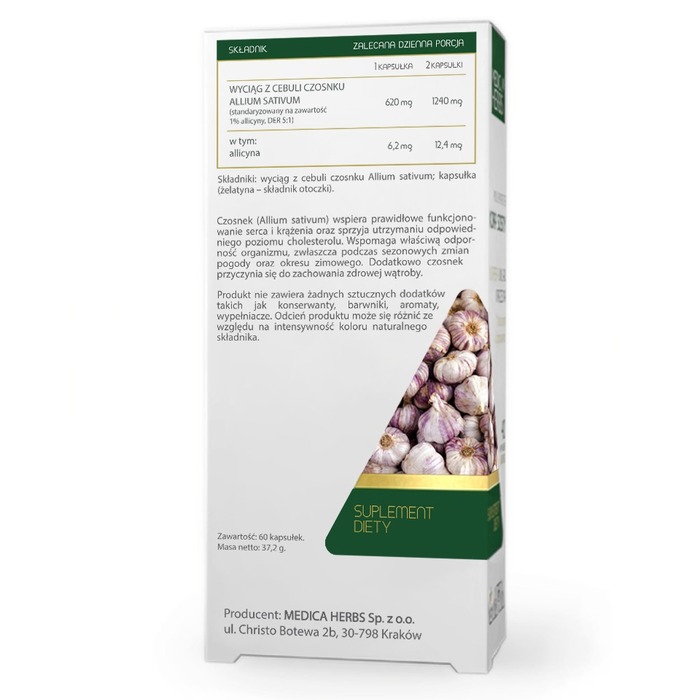 Капсулы Medica Herbs Garlic 620мг — это высококачественный продукт, содержащий экстракт чеснока, который поддерживает здоровье и активность организма. В каждой упаковке содержится 60 капсул, что обеспечивает длительный курс применения.