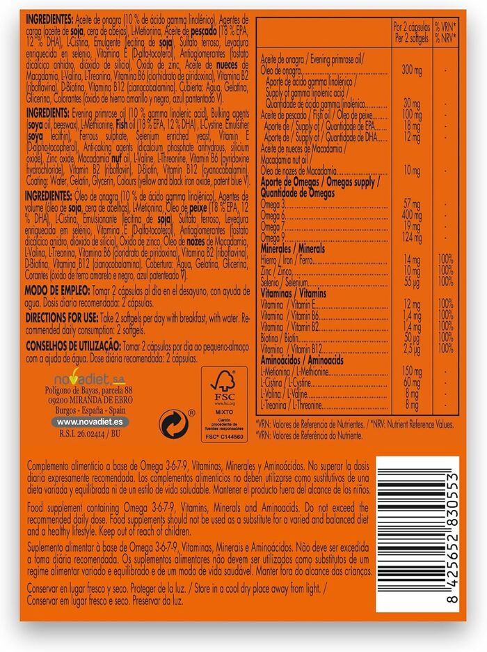 Капсулы Novadiet Capilare легко принимать и подходят для ежедневного использования. Они идеально подходят для людей, страдающих от выпадения волос, а также для тех, кто хочет улучшить их общее состояние.
