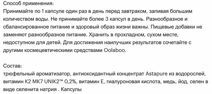 Капсулы Oolaboo Skin Care Truffle Indulgence имеют удобную форму и легко усваиваются организмом. Они идеально подходят для ежедневного использования и могут быть включены в любой уход за кожей, обеспечивая максимальный эффект.