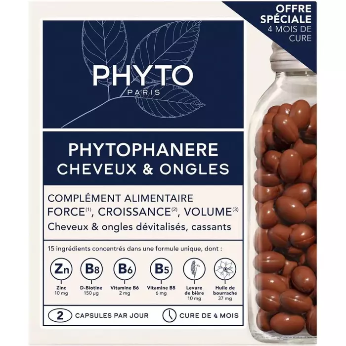Капсулы PHYTOPHANERE для волос и ногтей от бренда Phyto — это эффективный биологически активный добавок, который помогает поддерживать здоровье и красоту ваших волос и ногтей. В каждой упаковке содержится 2 банки по 120 капсул, что обеспечивает длительный курс приема.