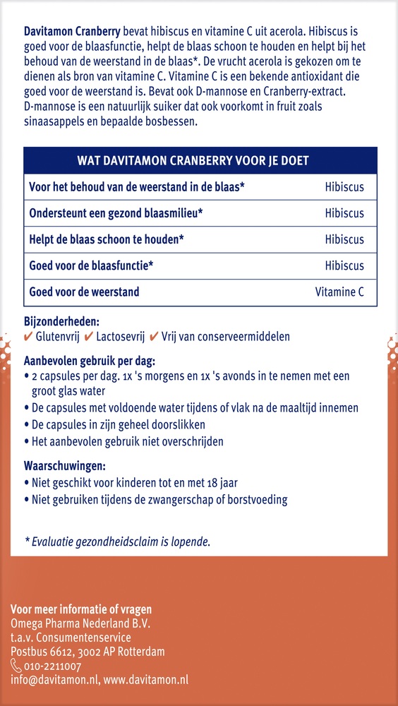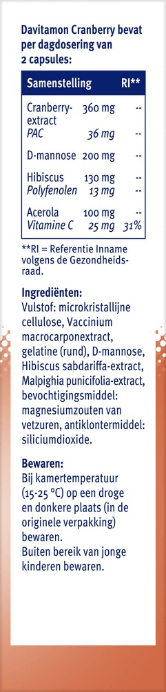 Davitamon Капсулы с клюквой, D-маннозой и гибискусом Davitamon Cranberry, 30 шт.