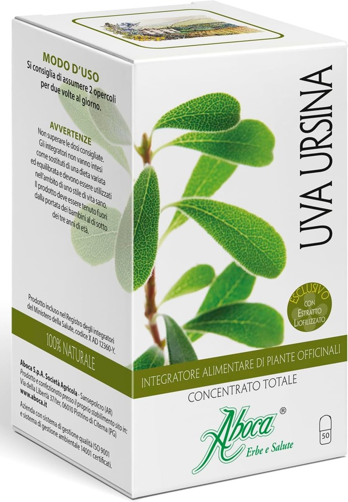 Капсулы Uva Ursina Total Concentrate от бренда Aboca — это высококачественный продукт, содержащий экстракт медвежьей ягоди, который поддерживает здоровье мочевыводящих путей. В каждой упаковке содержится 50 капсул по 500 мг, что обеспечивает удобство в использовании.