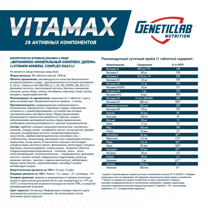 Geneticlab Витаминно-минеральный комплекс Витамакс, 90 капсул