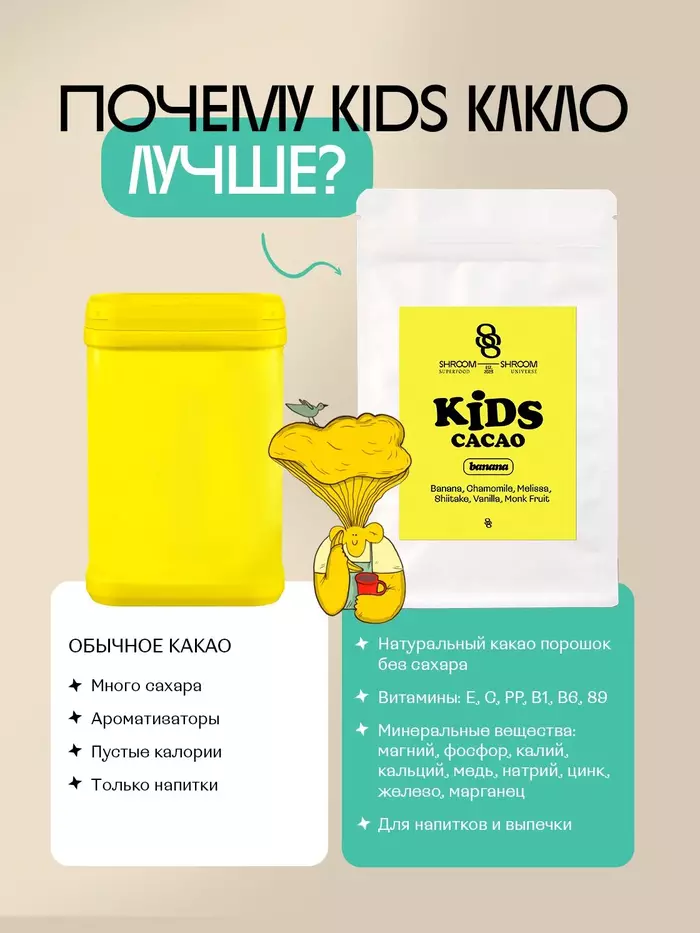 SHROOM SHROOM Детское какао Банан, 250 г