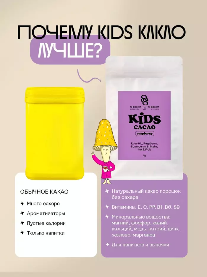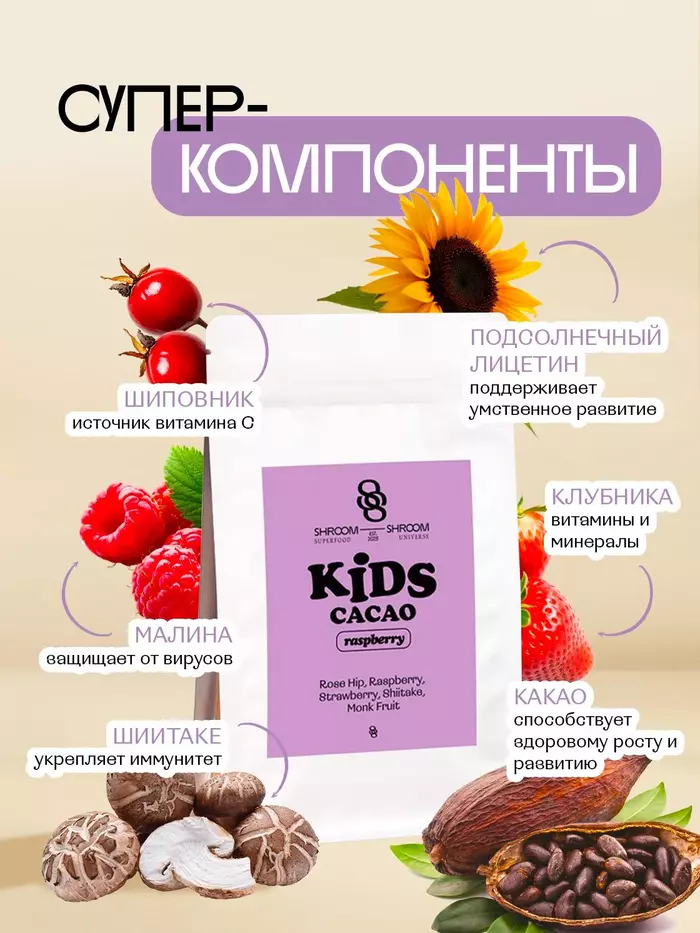 SHROOM SHROOM Какао для детей Малина, 250 г