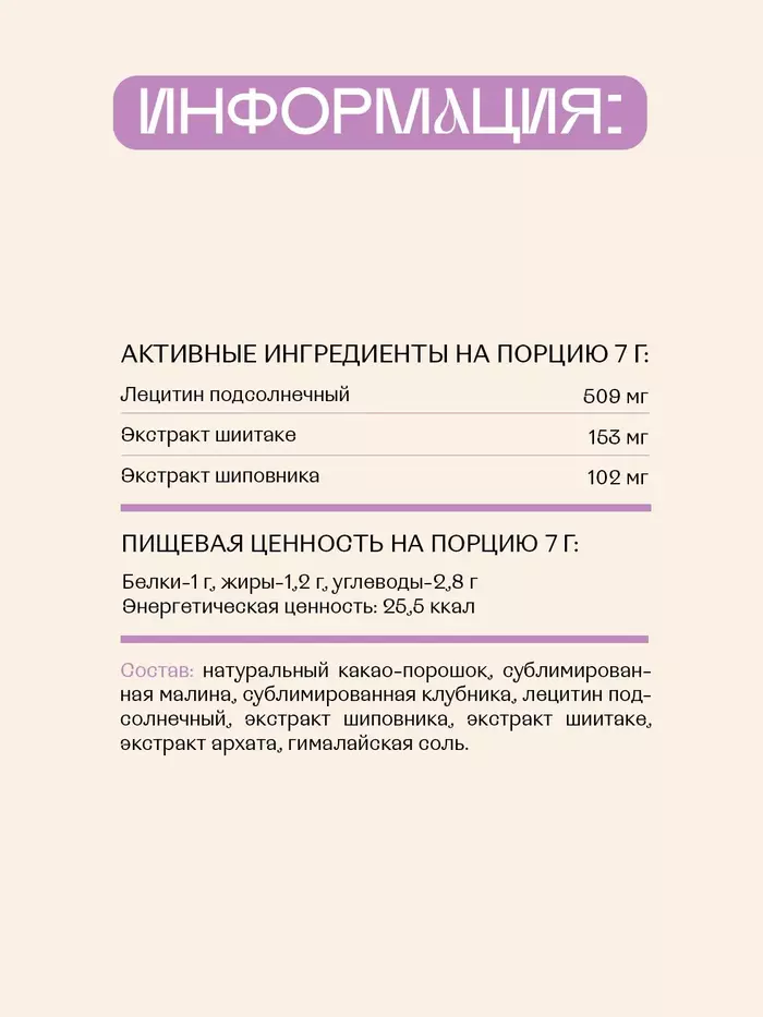 Berry special moments!Яркий и свежий аромат малины и клубники идеально сочетается с шоколадным ароматом натуральных какао-бобов. Ягоды придают вкусу какао легкую приятную кислинку.СУПЕРГЕРОИ:ШИПОВНИК богат витамином C, ШИИТАКЕ укрепляет иммунитет, ПОДСОЛНЕЧНЫЙ ЛЕЦИТИН улучшает память и концентрацию внимания.
