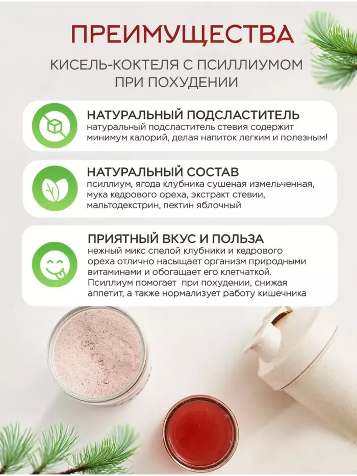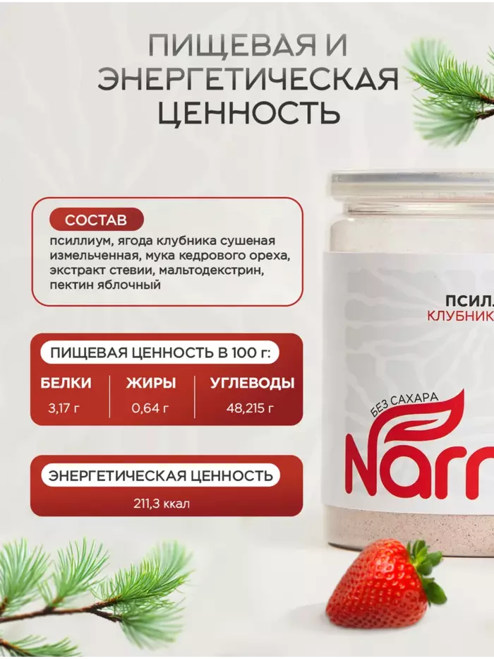Псиллиум Кисель Клубника Кедр от бренда Narmak Premium — это отличный способ добавить полезные вещества в ваш рацион. В каждой упаковке содержится 300 г продукта, который обладает уникальными свойствами и вкусом.