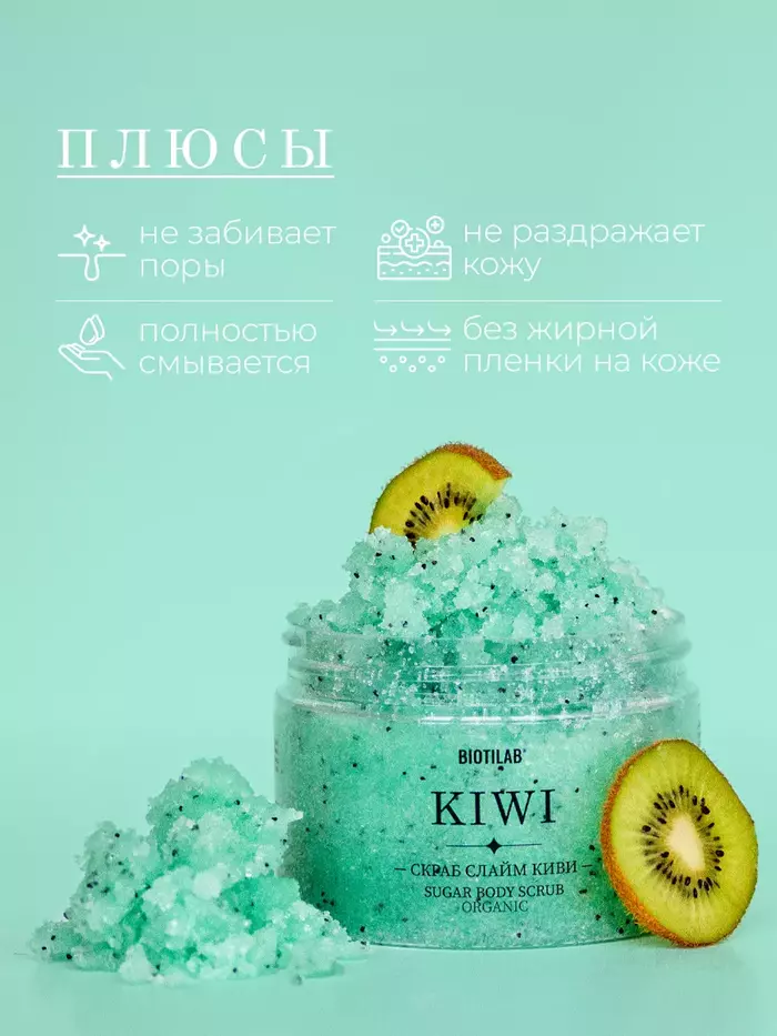 Kiwi - Увлажняющий скраб слайм для тела от бренда Плацентоль — это уникальный продукт, который обеспечивает глубокое увлажнение и питание кожи. Его текстура слайма позволяет легко и приятно наносить скраб, делая процесс ухода за телом настоящим удовольствием.