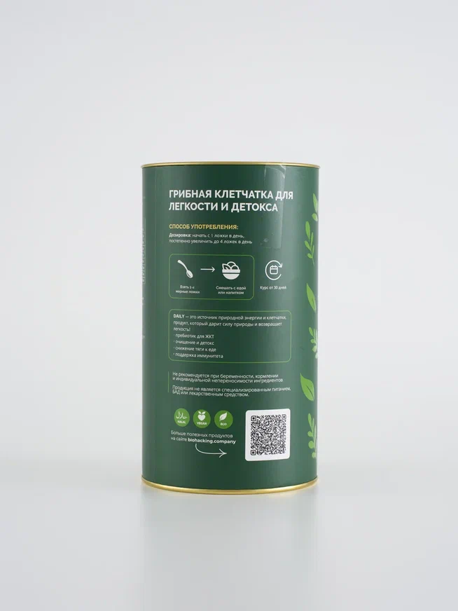 Клетчатка грибная - функциональная пищевая смесь растительного происхождения, источник пищевых волокон, предназначенная для поддержки пищеварения, работы кишечника и контроля аппетита. Продукт относится к категории растворимая клетчатка и используется в ежедневном рационе как клетчатка для похудения, детокса и общего баланса ЖКТ. Формула включает клетчатку псиллиум (шелуха подорожника), клетчатку яблочную, инулин, льняную муку, кокосовую и рисовую муку, грибы лисички и тмин. Такое сочетание компонентов характерно для современных функциональных смесей и продуктов категории суперфуд, ориентированных на питание микробиоты и поддержку пищеварительных процессов. Растворимая клетчатка на основе псиллиума образует гелеобразную структуру, способствует ощущению насыщения и используется в продуктах для детокса и программ детокс для похудения. Яблочная клетчатка содержит природные пектины и применяется в смесях для очищения организма и поддержки кишечника. Инулин известен как пребиотический компонент и широко используется в продуктах для микрофлоры. Грибная клетчатка с лисичками относится к функциональным смесям для регулярного применения и используется в рамках программ мягкого очищения организма без агрессивного воздействия. По своим характеристикам продукт может сравниваться с такими категориями, как клетчатка сибирская, бамбуковая клетчатка и другие источники пищевых волокон, применяемые в функциональном питании и суперфуд-смесях.Клетчатка для кишечника подходит при дефиците пищевых волокон в рационе, низком потреблении овощей и фруктов, а также как часть сбалансированного питания. Продукт не содержит сахара, искусственных ароматизаторов и красителей, подходит для ежедневного использования.