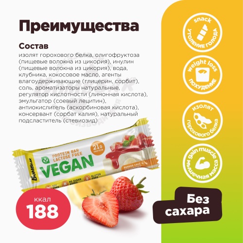 Bombbar Протеиновый батончик неглазированный Клубника-Банан, 60 г
