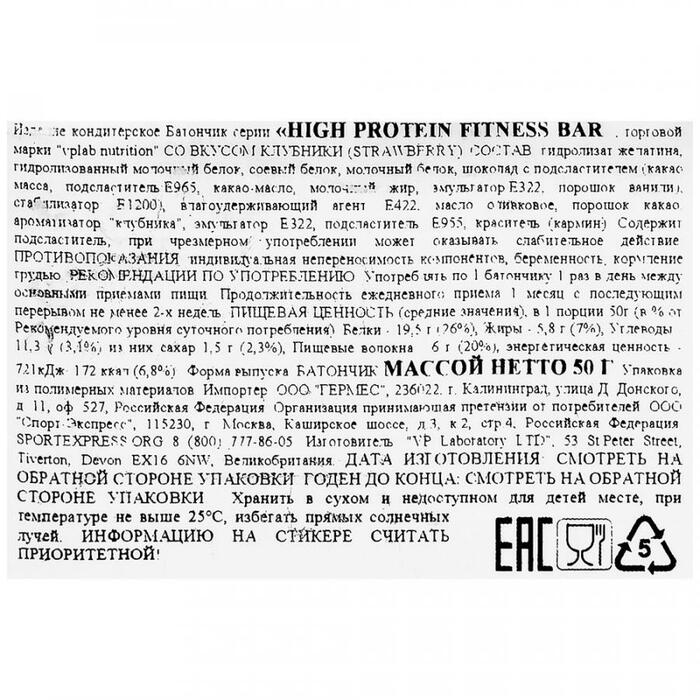 Dark Pharm Протеиновый батончик High Protein Fitness bar Клубника, 50 г