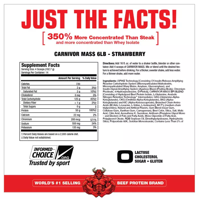 MuscleMeds Гейнер Carnivor Mass Клубника, 2590 г
