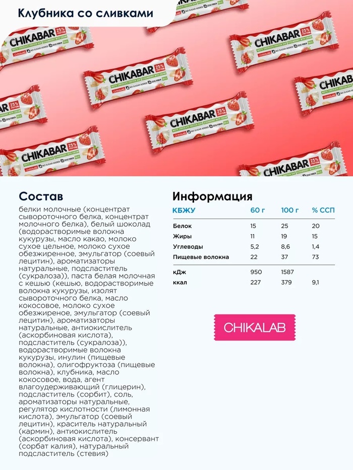 Chikalab Протеиновый батончик Chikabar Клубника-Сливки, 60 г