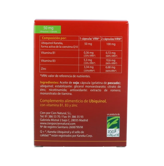 Коэнзим Q10 Cien Por Cien Natural Quinol 10 — это высококачественная добавка, содержащая 100 мг коэнзима Q10 в каждой капсуле. В упаковке представлено 30 капсул, что обеспечивает длительный курс приема для поддержания здоровья.