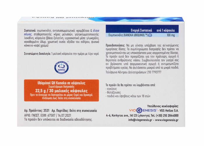 Viogenesis Коэнзим Q10 Убихинол Viogenesis QH Kaneka 100 мг 30 мягких капсул