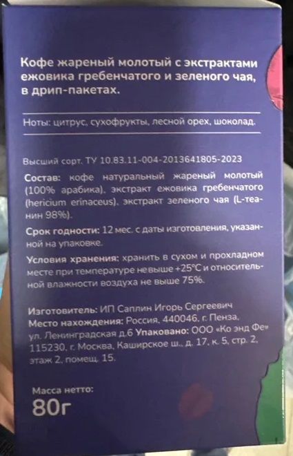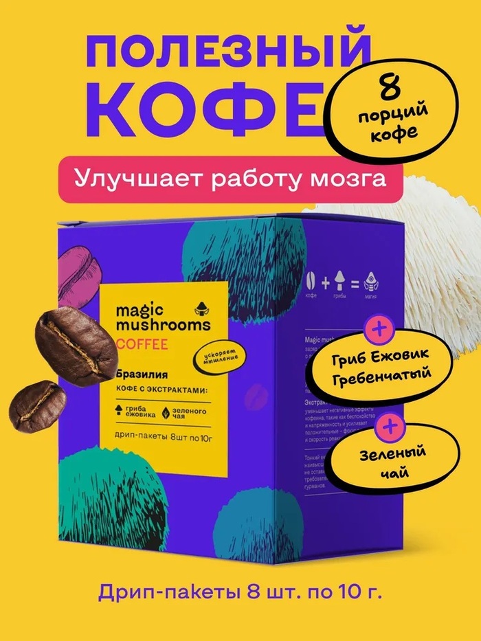 Кофе Ежовик+зеленый чай. Кофе с ежовиком в дрип-пакетах для улучшения работы мозга.