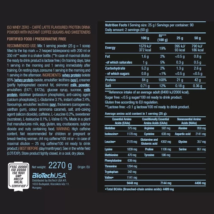 BioTechUSA Изолят сывороточного протеина Iso Whey Zero Кофе Латте, 2270 г