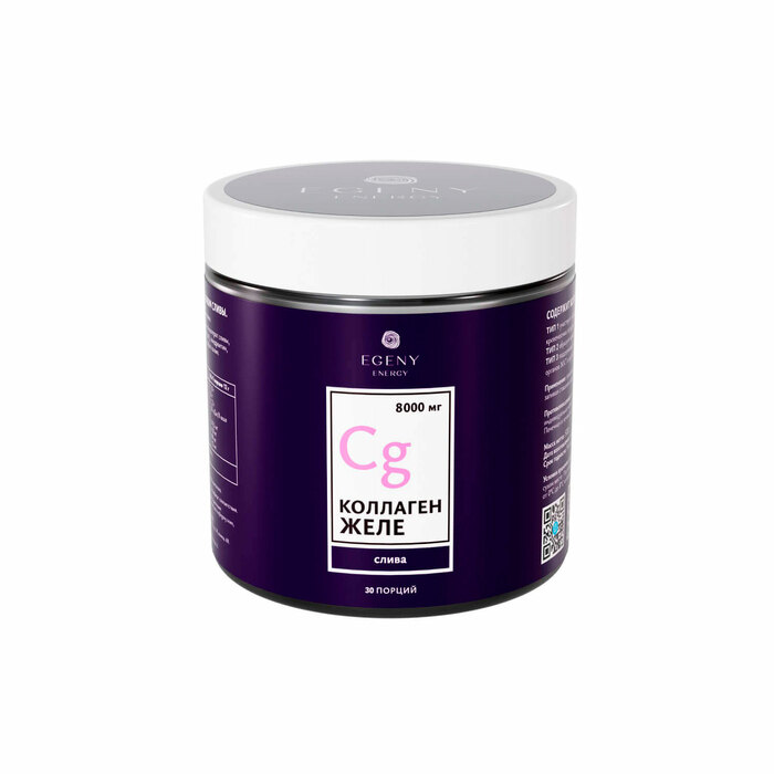 Желейный коллаген EGENY с соком сливы – содержит три различных типа коллагена, а именно тип 1, тип 2 и тип 3, каждый из которых играет важную роль в организме, обеспечивая комбинированный оздоравливающий эффект. Одна порция (12 г) – это 8000 мг гидролизованного пептидного коллагена с биодоступностью 96%, обеспечивает комплексное восполнение.Ничего не нужно растворять или готовить. Просто съешьте порцию в любое время – так коллаген усваивается быстрее и становится естественной частью ежедневного ухода за собой.Коллаген EGENY в сливовом желе помогает коже оставаться упругой и эластичной, поддерживает здоровье суставов и связок. Формула дополнена витаминами C и E, гиалуроновой кислотой и хондроитином – они усиливают действие коллагена и защищают клетки от преждевременного старения.Коллаген II типа особенно важен для хрящевой ткани, поэтому продукт подойдёт людям с активным образом жизни и тем, кто заботится о подвижности и лёгкости тела. Формат желе – это максимум удобства. Ничего не нужно растворять или готовить. Просто съешьте порцию в любое время – так коллаген усваивается быстрее и становится естественной частью ежедневного ухода за собой.Натуральный сок сливы не только обогащает продукт приятным ароматом и вкусом, но также привносит целый спектр полезных свойств. Слива содержит высокую концентрацию полифенолов и флавоноидов - мощных антиоксидантов, способствующих защите клеток организма от вредного воздействия свободных радикалов. Кроме этого, сок сливы содержит антоцианы, которые помогают снизить воспалительные процессы в организме, улучшая его состояние и общее здоровье.