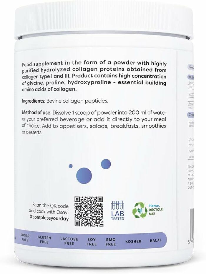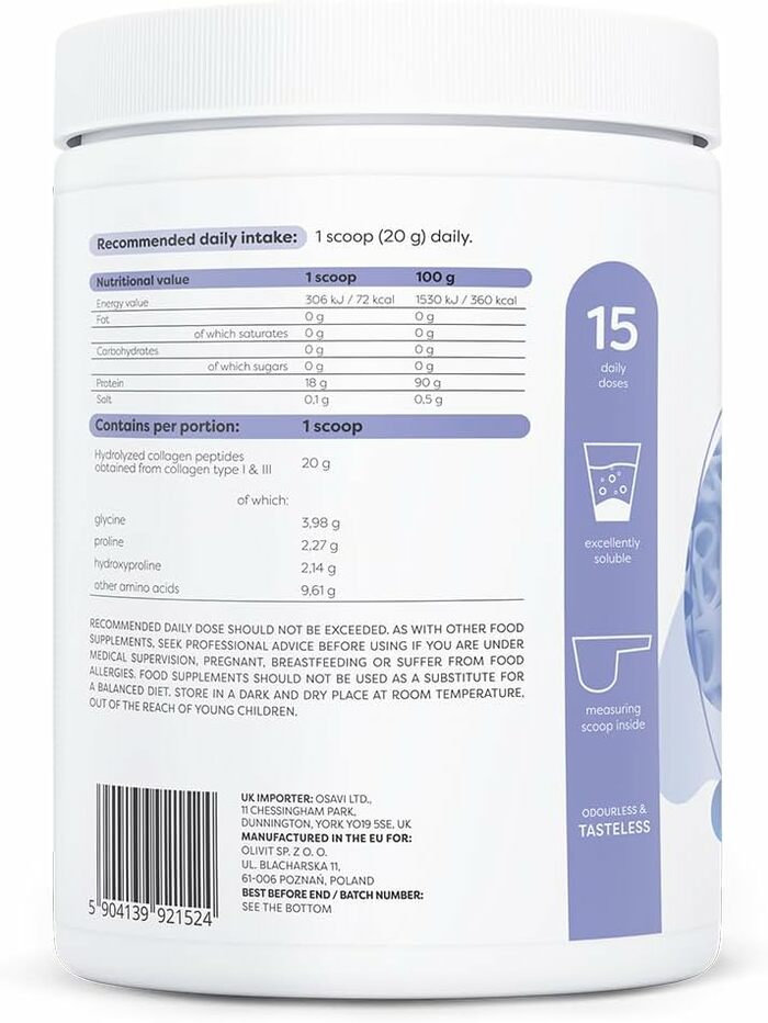 Коллаген Osavi имеет нейтральный вкус и легко растворяется в воде или других напитках, что делает его удобным для ежедневного использования. Он подходит для людей всех возрастов и может быть включен в рацион как дополнение к питанию.