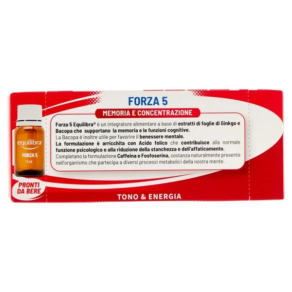 Комплекс Equilibra Forza 5 с гингко, бакопой, фосфатидилсерином и кофеином — это мощный продукт, созданный для поддержки умственной активности и концентрации. В каждой упаковке содержится 10 флаконов, что обеспечивает удобство использования и дозирования.