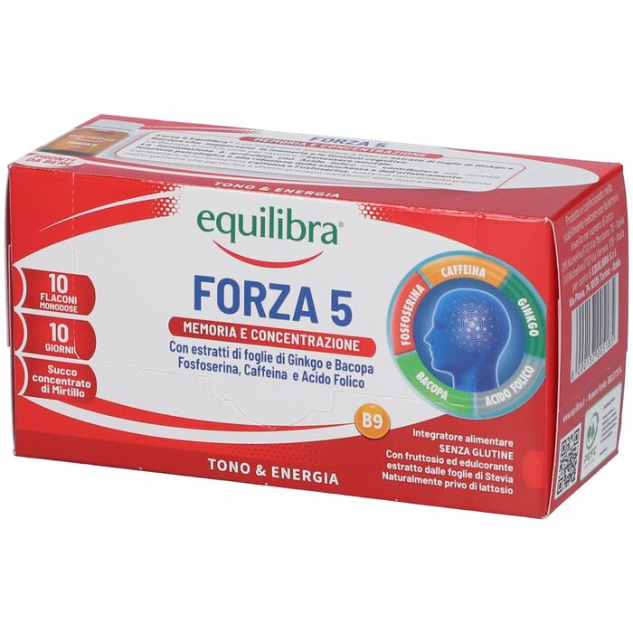 Equilibra Комплекс Equilibra Forza 5 с гингко, бакопой, фосфатидилсерином и кофеином, 10 флаконов