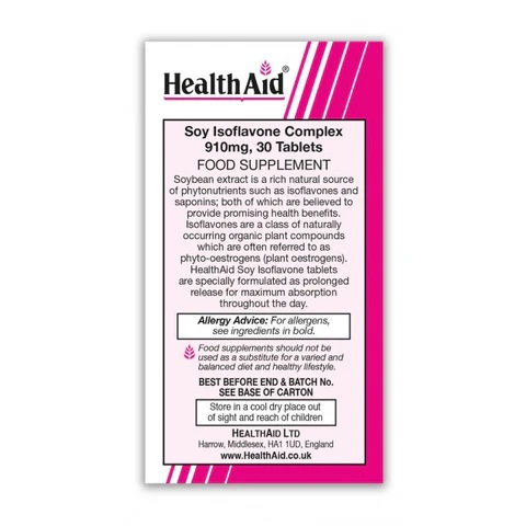 Комплекс изофлавонов сои Health Aid Complejo Isoflavona De Soja — это эффективный продукт, который поддерживает здоровье женщин. В каждой упаковке содержится 30 таблеток, обогащенных изофлавонами, которые помогают сбалансировать гормональный фон.