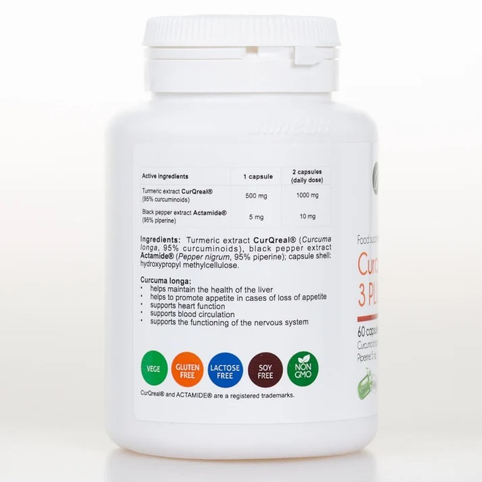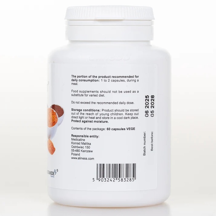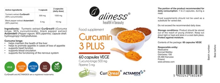 Комплекс куркумина C3 Plus от Aliness — это высококачественная добавка, содержащая 500 мг куркумина в каждой капсуле. В упаковке представлено 60 капсул, что обеспечивает длительный курс приема для достижения максимального эффекта.