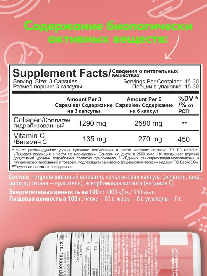 Комплекс Life Collagen содержит высококачественный гидролизованный коллаген, который легко усваивается организмом. Формула дополнена витаминами и минералами, усиливающими действие коллагена и поддерживающими общее здоровье. Продукт не содержит искусственных добавок и подходит для ежедневного использования.
