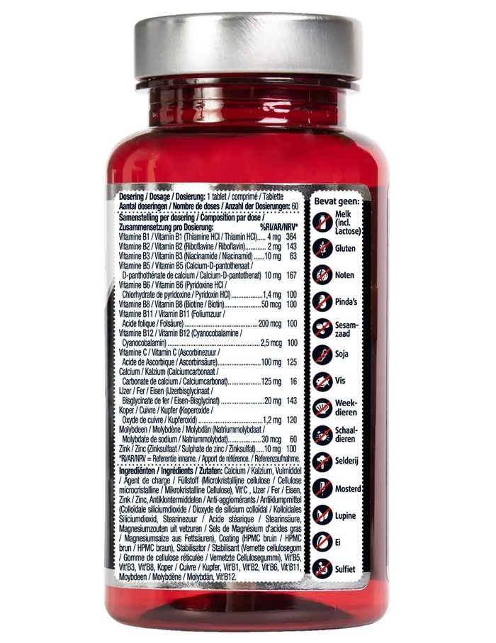 • Поддержка уровня железа: Комплекс содержит железо, которое необходимо для нормального функционирования организма и предотвращения анемии.