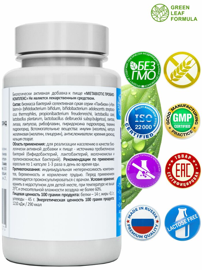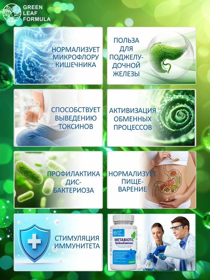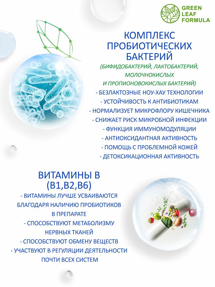 Комплекс пробиотиков и пребиотиков для кишечника от бренда GREEN LEAF FORMULA — это эффективное решение для поддержания здоровья вашего пищеварительного тракта. В каждой упаковке содержится 60 капсул, которые помогут восстановить баланс микрофлоры и улучшить работу кишечника.