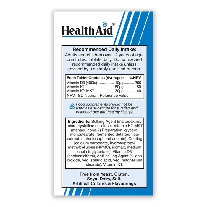 Комплекс витаминов К и D3 Health Aid Menaquinone MK7 — это идеальное решение для поддержания здоровья всей семьи. В каждой упаковке содержится 30 таблеток, которые обеспечат ваш организм необходимыми витаминами и минералами.