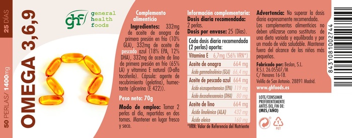 GHF Комплекс жирных кислот Омега 3-6-9 (1300 мг), 50 капсул