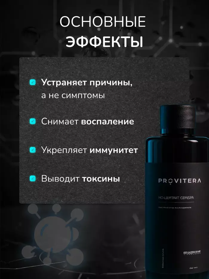 Концентрат наночастиц серебра имеет высокую степень очистки и биодоступности, что обеспечивает его эффективность. Он подходит для использования как в профилактических целях, так и в качестве дополнительного средства при лечении различных заболеваний.